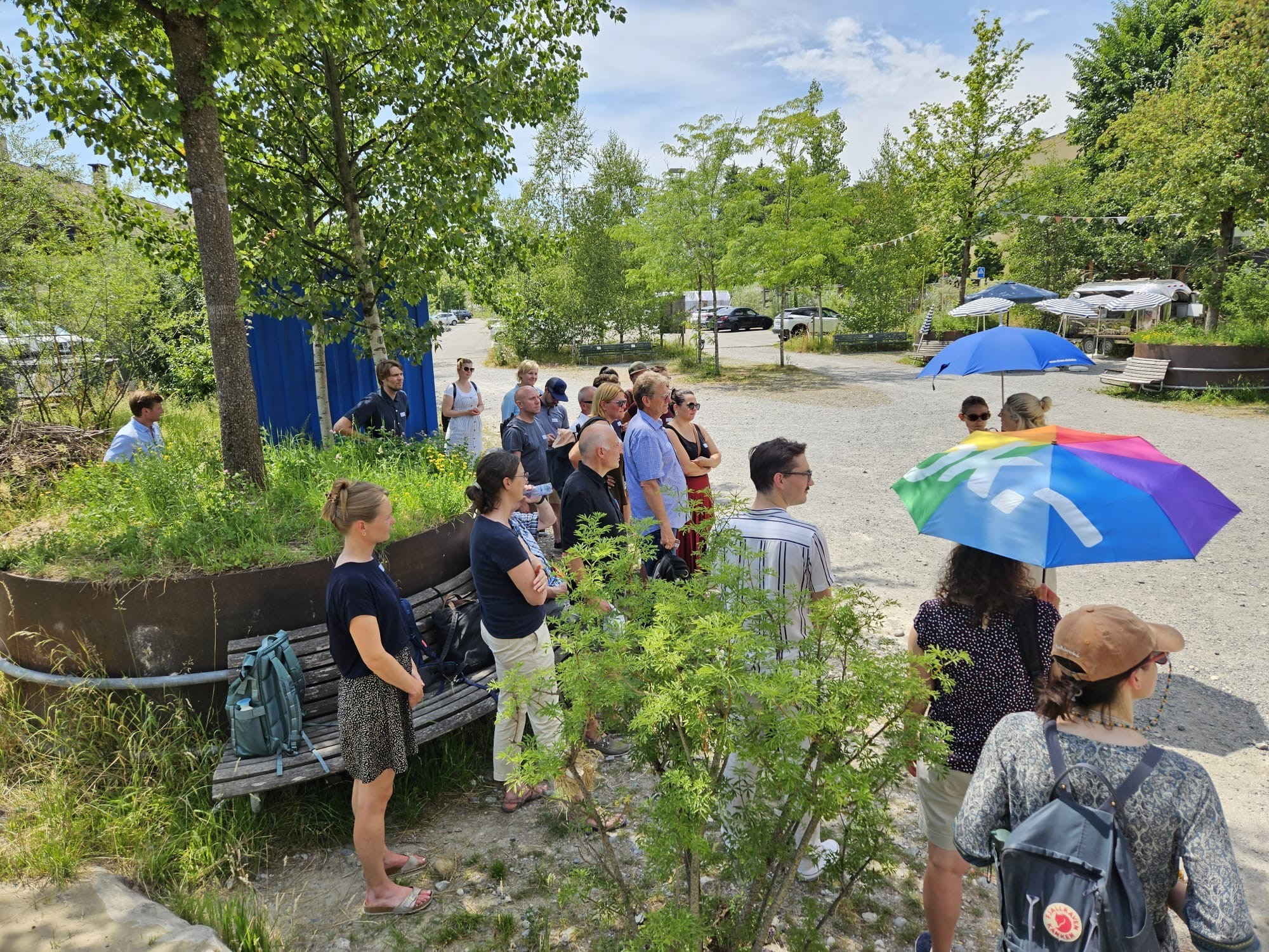 Anfang Juli organisierte die kantonale Arbeitsgruppe für strukturelle Bewegungsförderung eine inspirierende Exkursion im Areal Bach beim Bahnhof St.Fiden. Bei sommerlichen Temperaturen trafen sich Fachpersonen aus der Raumplanung sowie Vertreterinnen und Vertreter von St.Galler Gemeinden, aus dem Fürstentum Liechtenstein und aus Vorarlberg zu einem gelungenen Nachmittag voller spannender Eindrücke und anregendem Austausch.